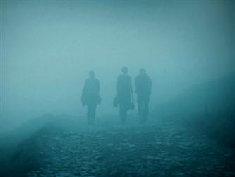 We walked into the station through three great arches forming a wall covered in mirrors. The effect was brighter than full sun, but diffuse, as if light was coming from everywhere. The other passengers moving with us appeared as shadows all exhaling puffs of frozen crystal breath.