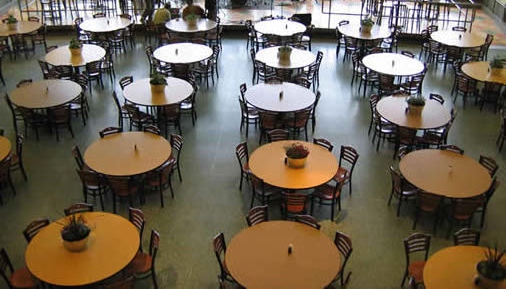 Tables and chairs, seemed below our feet in the mirrored floor.