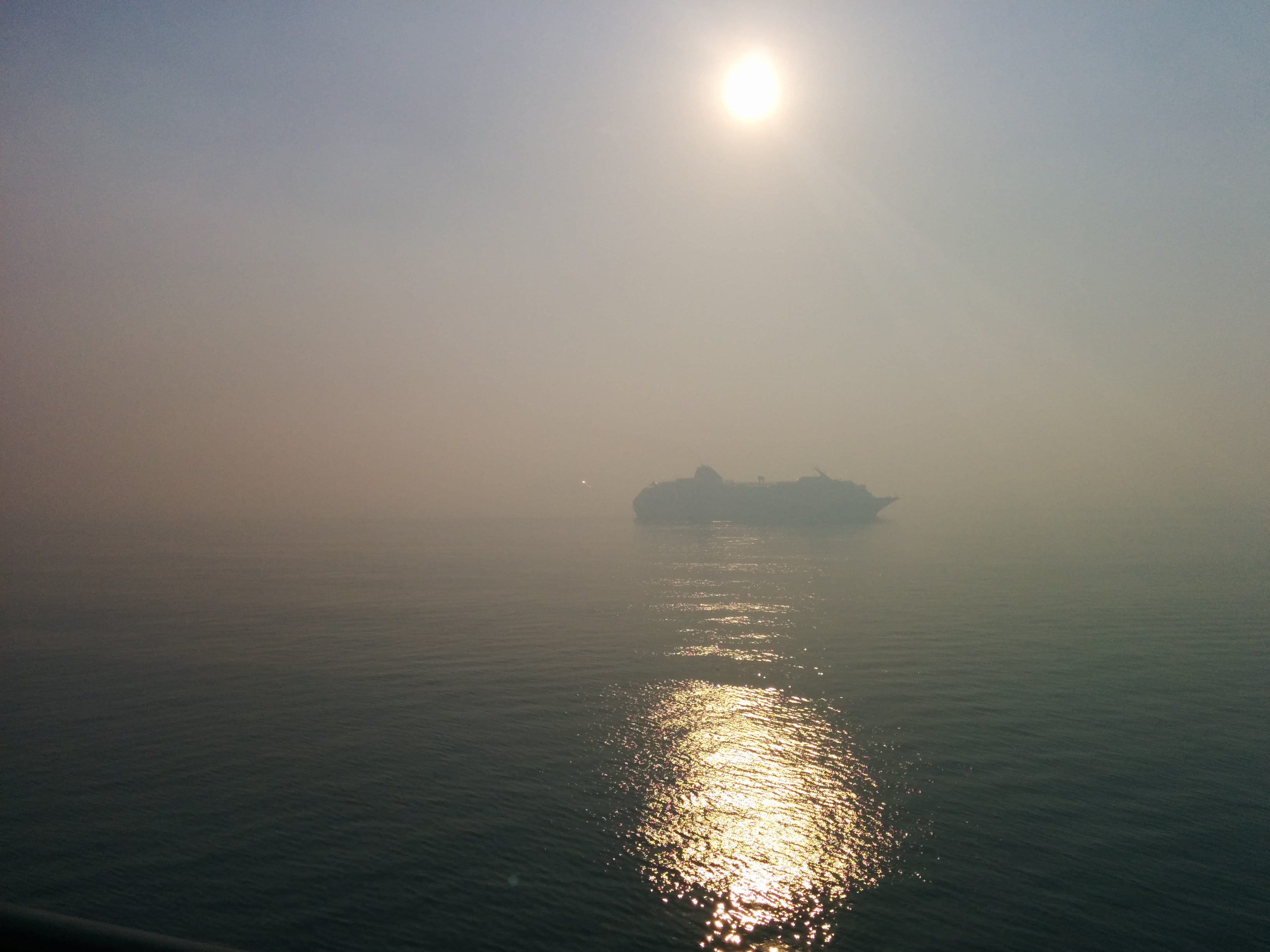 On the last morning of our cruise, our boat was delayed due to a brush fire in the Everglades the day before. The Port of Miami was closed and we could barely make out the other boats queued up waiting for the port to reopen due to the thick smoke.