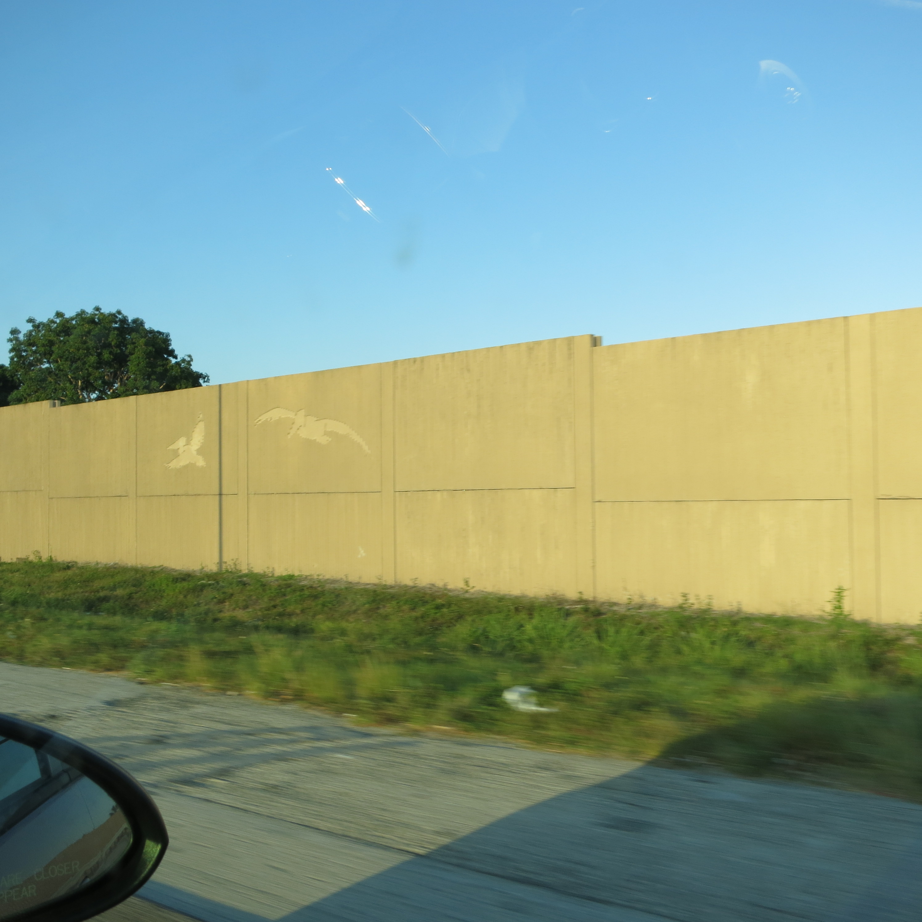 The sound barriers along the freeway here are stamped with silhouettes of local animals.