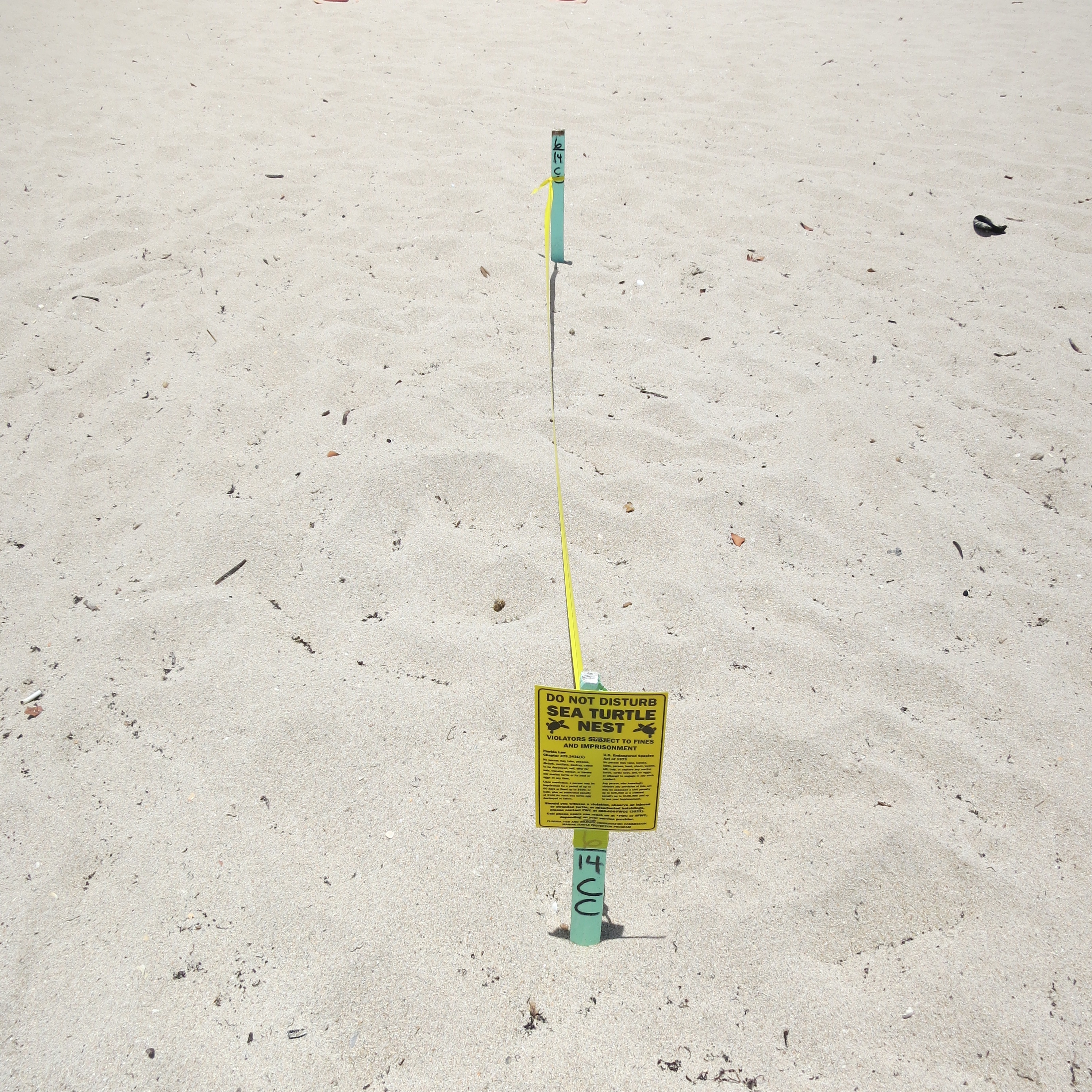 Our local beach has many turtle nests, all marked by a stake and tape.