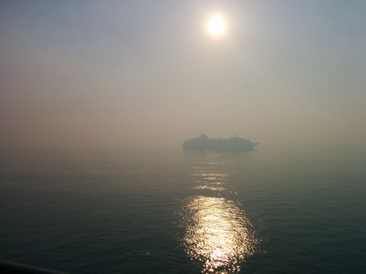 IMG_20140609_080258 Published June 10, 2014 at 3264 × 2448 in Still in Florida ← Previous Next → On the last morning of our cruise, our boat was delayed due to a brush fire in the Everglades the day before. The Port of Miami was closed and we could barely make out the other boats queued up waiting for the port to reopen due to the thick smoke.