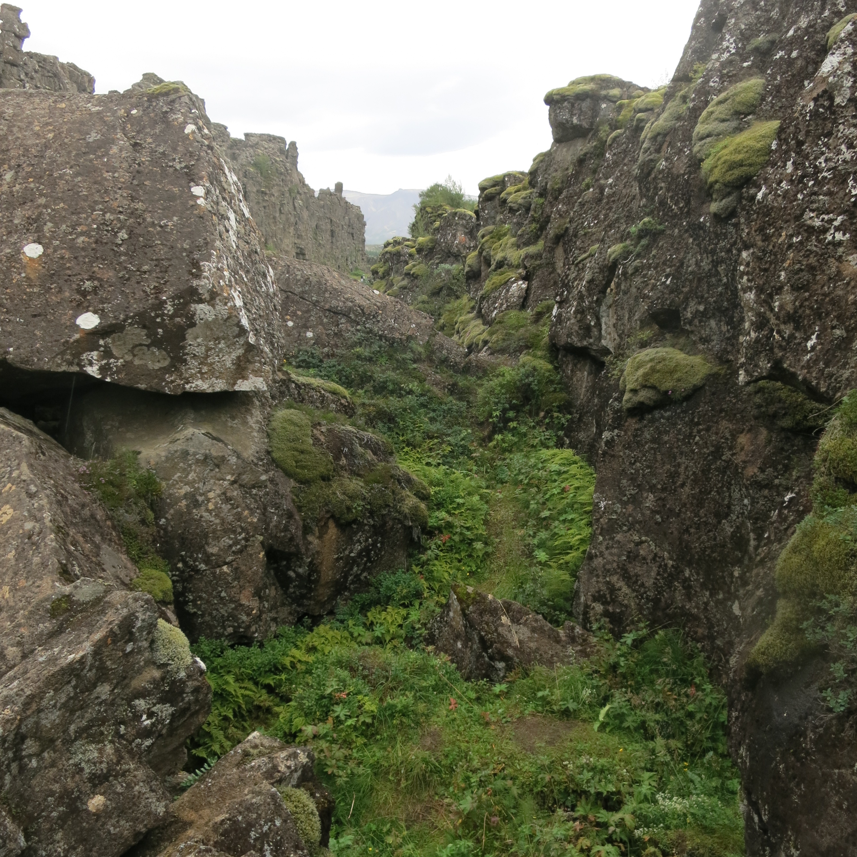 Thingvellier National Park. One of the cracks formed by the increasing rift between the North American Plate and the Eurasian Plate