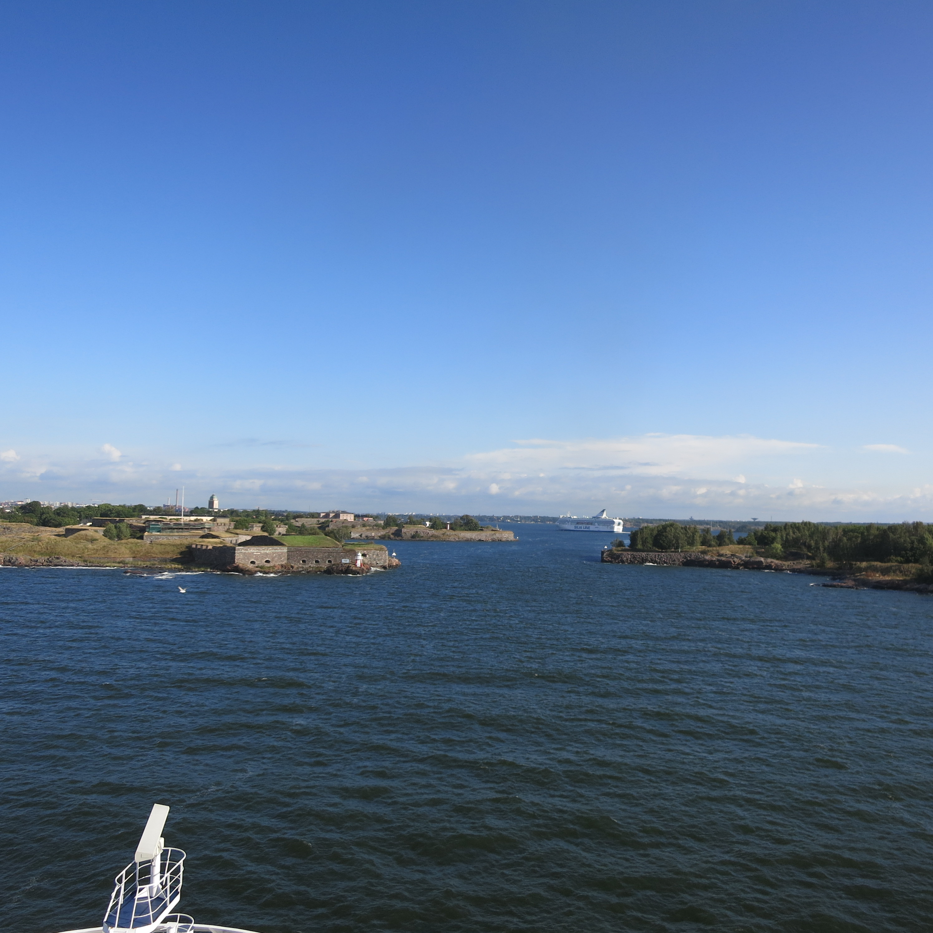 A narrow passage on the way into Helsinki, Finland. The cruise ship before us looks like they will barely fit.