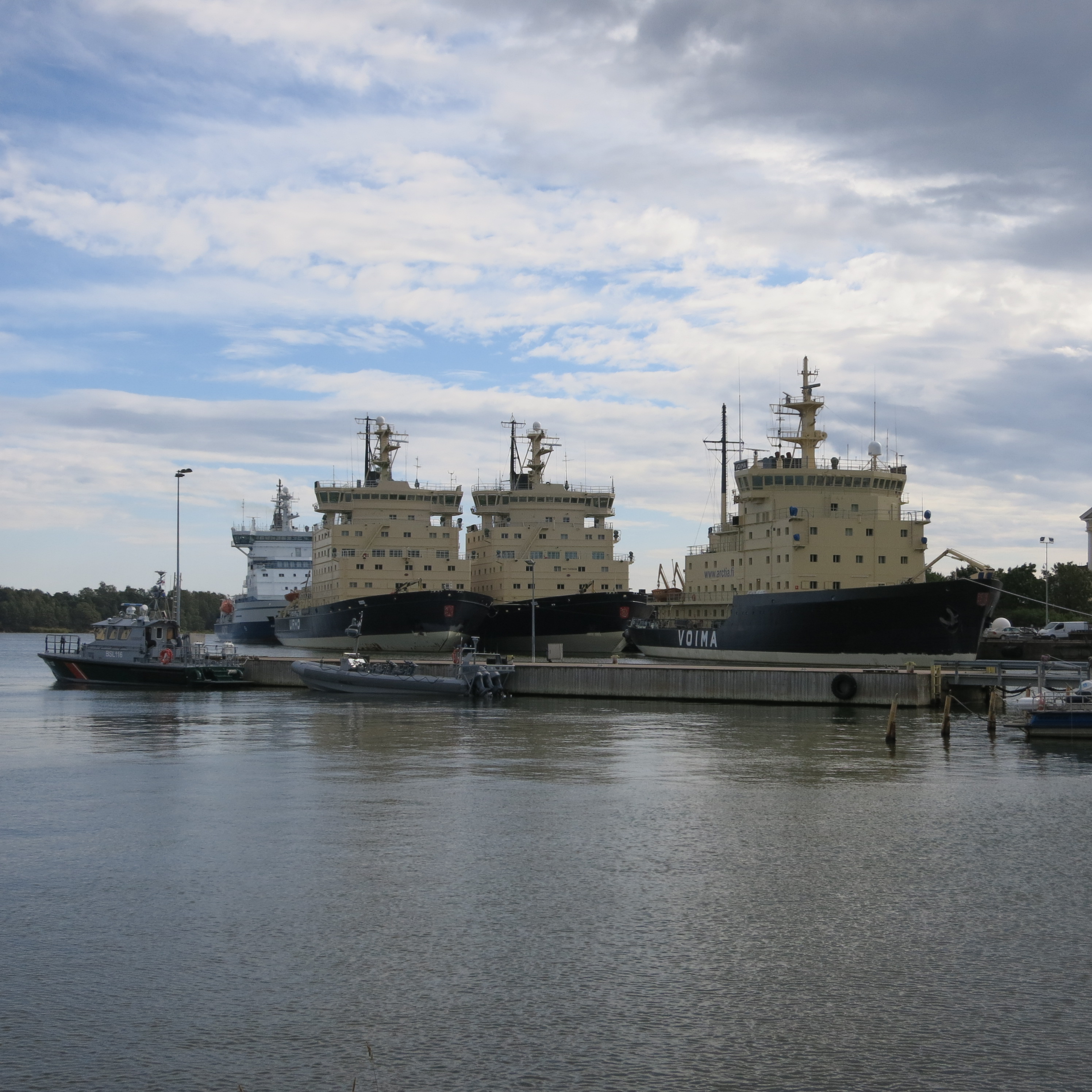 Five icebreakers waiting for winter. Helsinki, Finland.