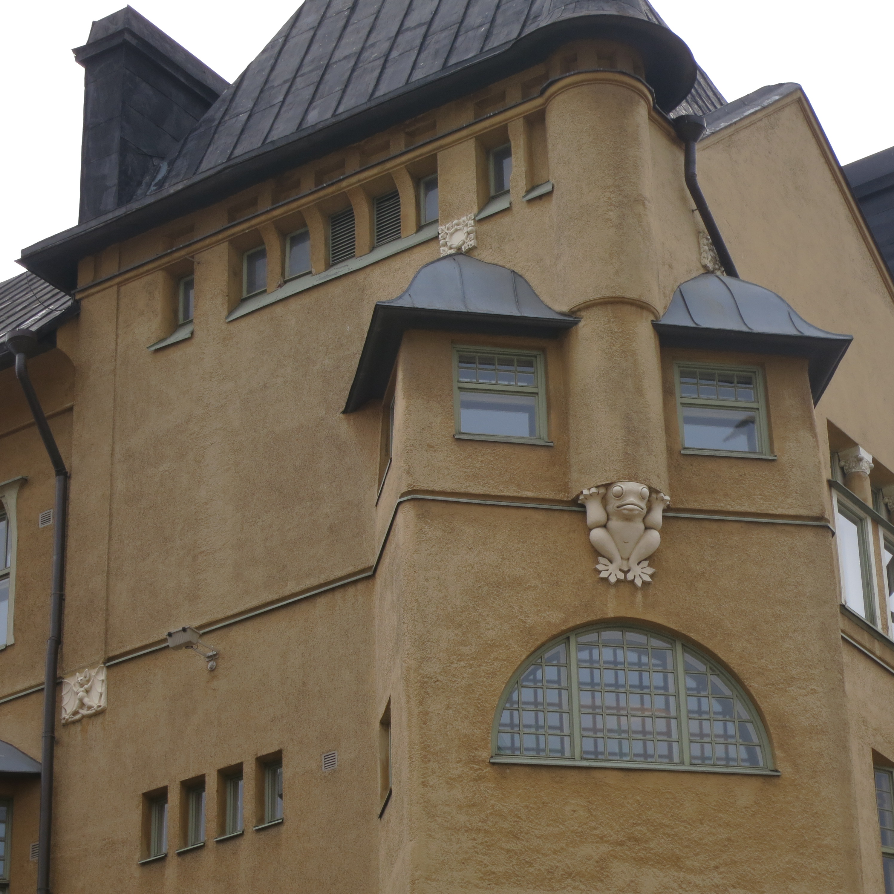 Helsinki, Finland. Fun animal-like details in white on this old building.