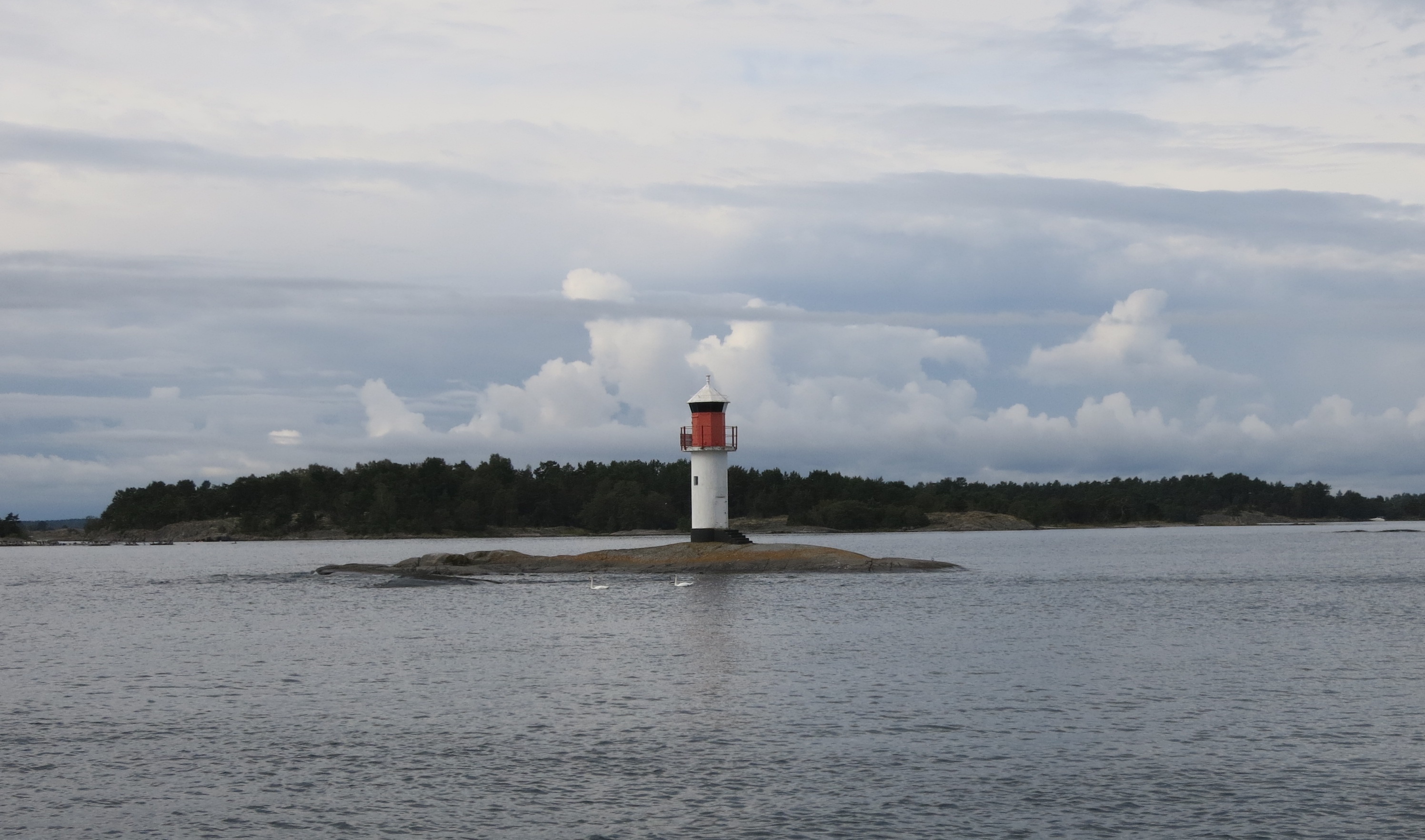 Paying respect at the famous “Kejsaren” navigation marker. Someone put a crown on this decades ago and now sailors toast as they pass, offering thanks for a safe passage.
