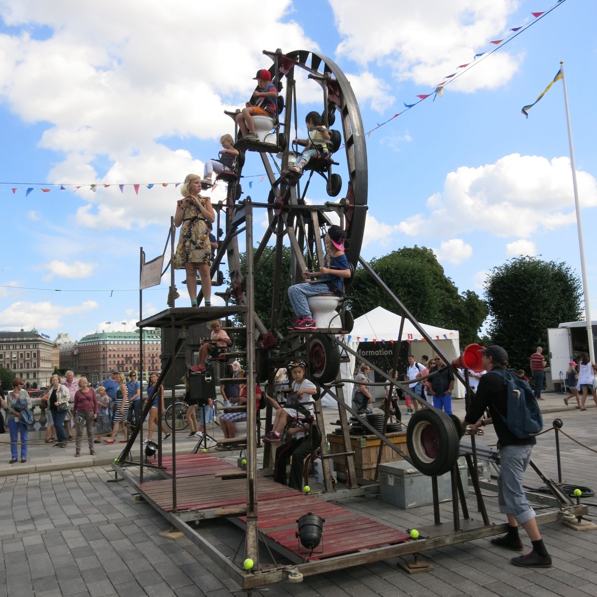 IMG_4426 Published September 7, 2014 at 2992 × 2992 in Hej! Välkommen till Sveriges! ← Previous Next → Ferris wheel at children’s carnival with a parent cranking the wheel on the right.