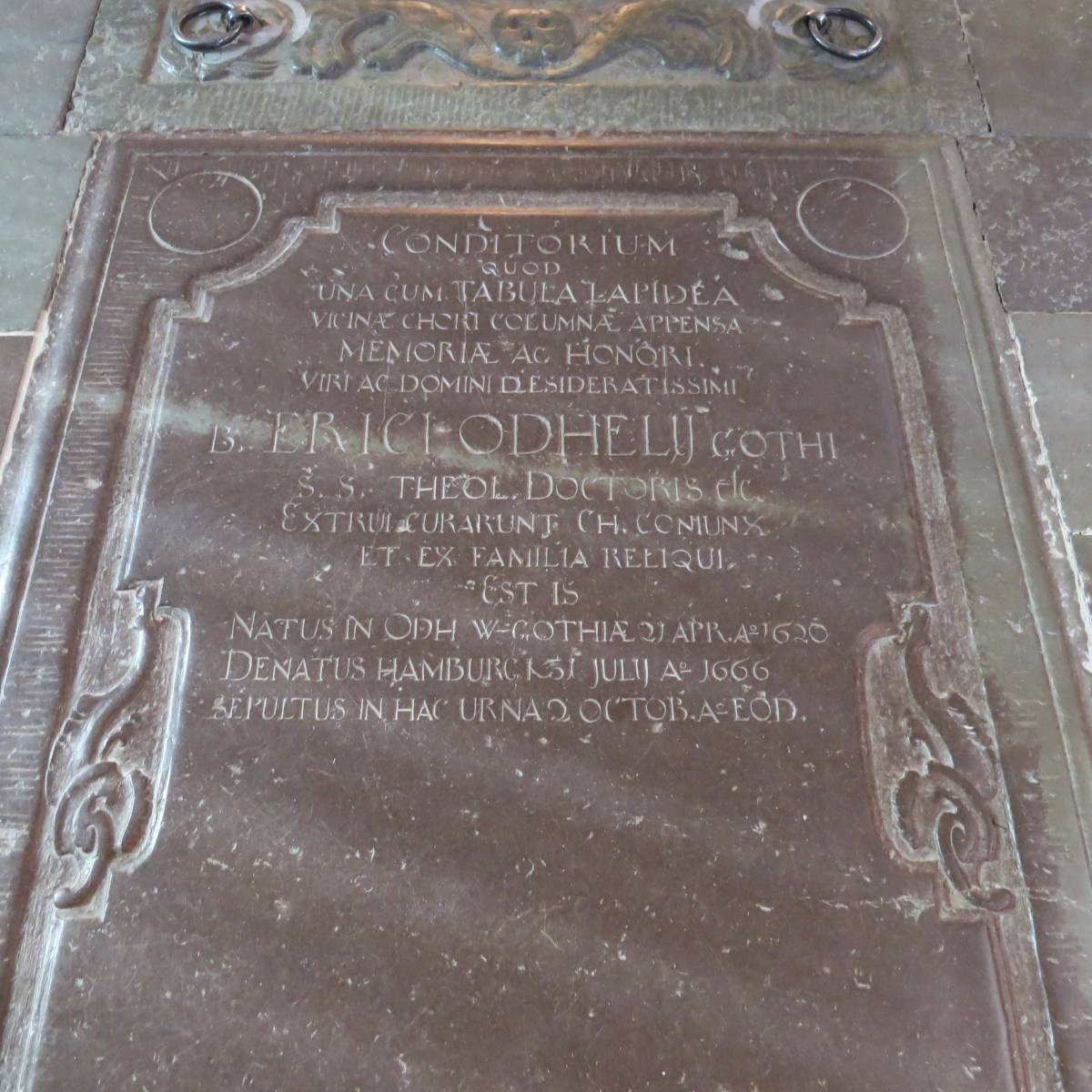 IMG_5058 Published September 9, 2014 at 2992 × 2992 in Sweden continued ← Previous Next → One of the many crypts on the floor of the Uppsala Cathedral. Note the dates 1620-1666. The elaborate carvings and rungs attached to many of these created trip hazards.