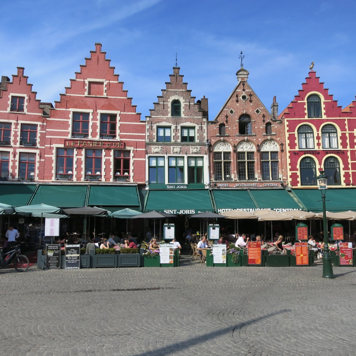 IMG_5493 Published September 29, 2014 at 2992 × 2992 in Bruges ← Previous Next → On the Markt Square, this row of cafes was perpetually busy.