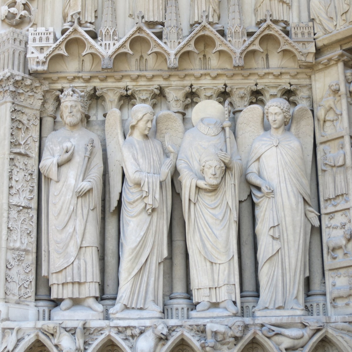 IMG_5690 Published October 7, 2014 at 2992 × 2992 in Arrival in Paris ← Previous Next → St Denis is the headless guy. The legend says he was decapitated, picked up his head, and walked 10k while preaching before he died.
