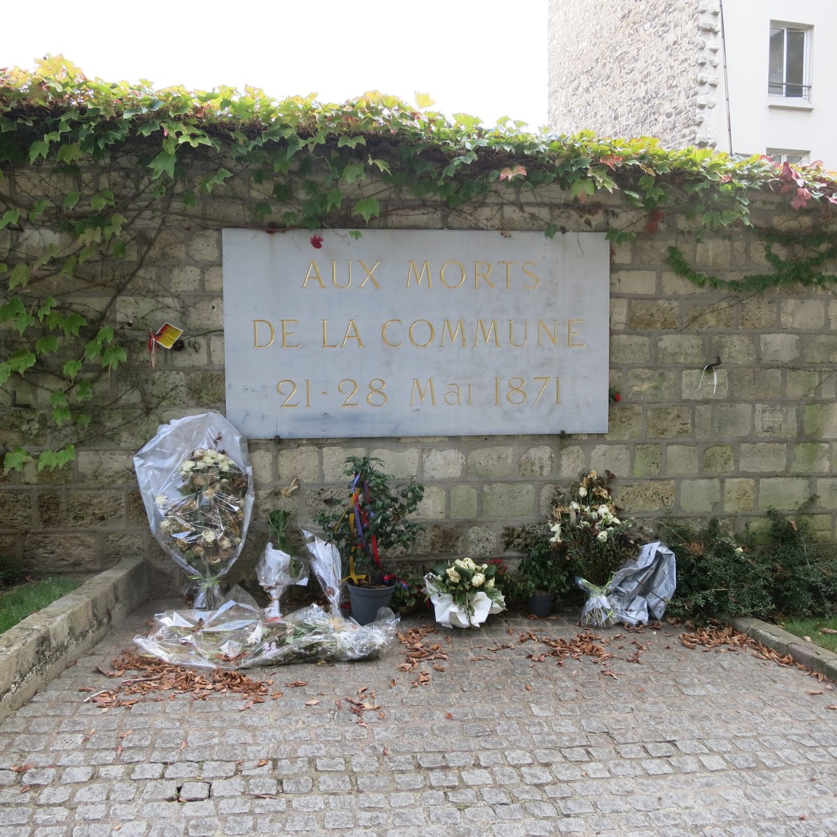 IMG_5802 Published October 7, 2014 at 2992 × 2992 in Au revoir, Paris! ← Previous Next → A revolutionist socialist group ruled Paris briefly in 1871, until they were defeated by the government. The final 200 retreated to the cemetery and lost a battle there. Those who survived the battle were executed at this site.
