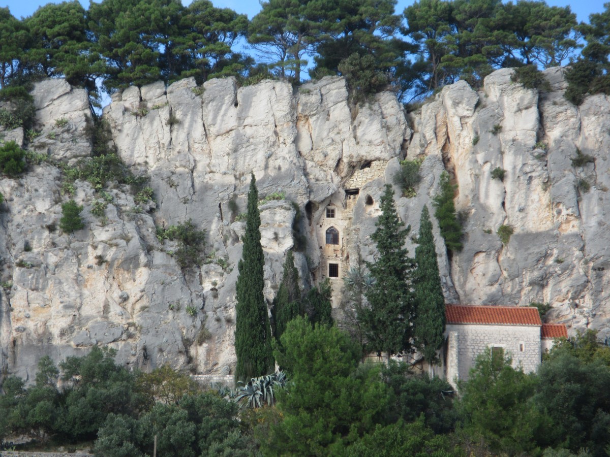 IMG_1407 Published November 19, 2014 at 4608 × 3456 in Goodbye, Croatia Next → Within Marjan park there are some renaissance hermitages, like this one, built into caves and cracks in the cliff. The red roof is a small chapel.