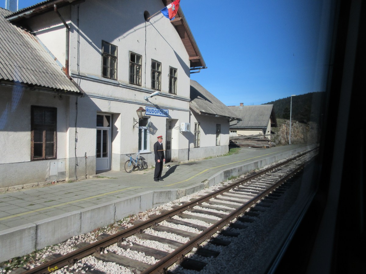 IMG_1522 Published November 24, 2014 at 4608 × 3456 in Goodbye, Croatia ← Previous On the train from Split to Zagreb, every small station en route had an attendant who flagged the train, even when we didn’t stop.
