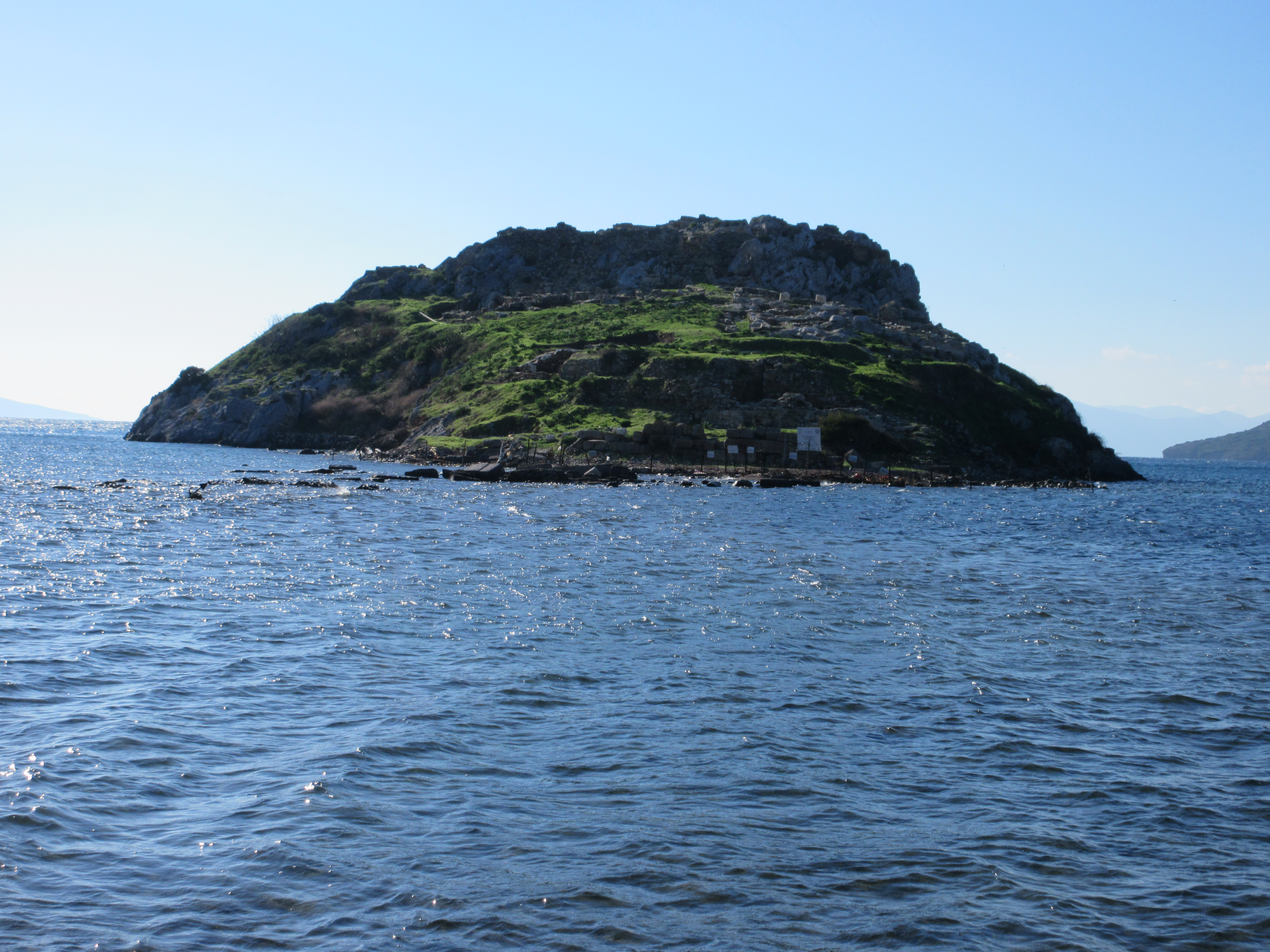 Part of the ancient Greek city Myndos. This island is covered with ruins and connected to the mainland at low tide by an ancient causeway.
