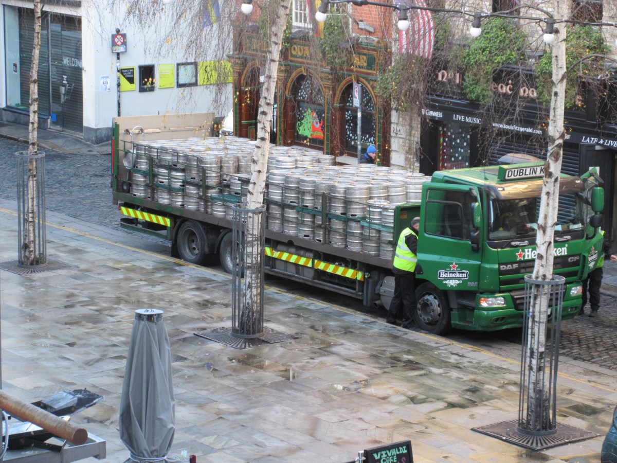 IMG_2524 Published January 19, 2015 at 4608 × 3456 in Dublin ← Previous Next → Daily morning delivery in the Temple Bar district. The Guinness truck is bigger.