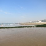- Beach at Knokke, Belgium. Large tides and shallow slope make for very long beaches. The green line across the foreground is part of a sand stabilization system.