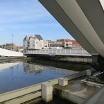 - We biked by this in Bruges. The bridge lifts when the counterbalanced arms rock.