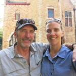 - Us in a Bruges courtyard. Megan loved how colorful the bricks are: red, yellow, green, brown, white.
